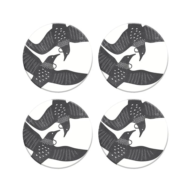 100% New Zealand Linocut Tui Ceramic Coaster Set