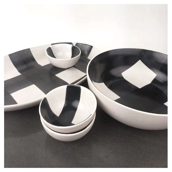 Made from hand painted stoneware, this large bowl is great for serving a variety of foods such as salads, pasta or use as a unique fruit bowl.