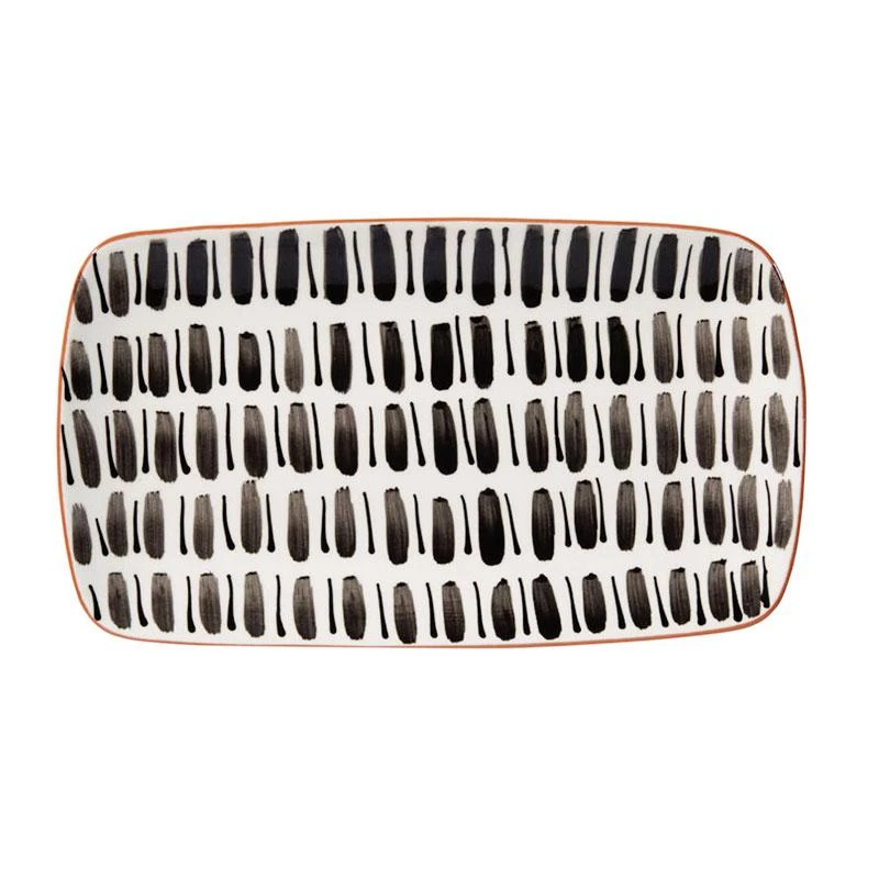 This striking platter features a bold black hand painted design with a terracotta coloured base and glossy finish.