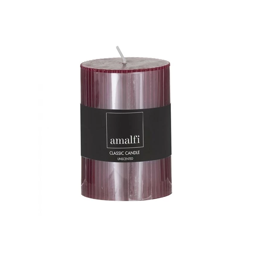 Amalfi Ribbed Unscented Pillar Candle – Plum