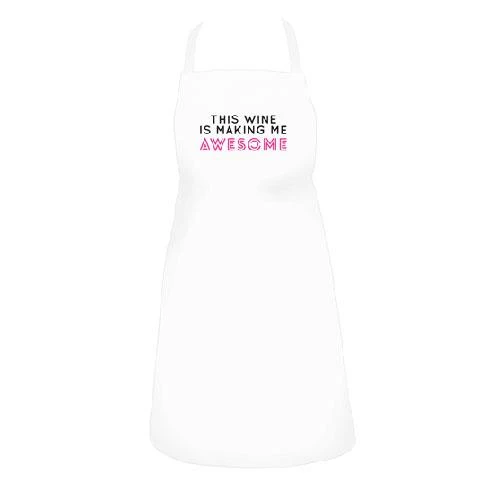 The 100% durable cotton apron features a bold black and fluro pink quote “This wine is making me awesome”.