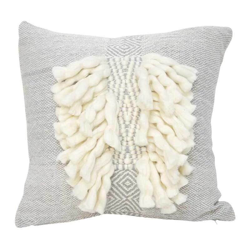 Featuring a beautiful grey woven design and thick cream tufts, this is a modern mix of tribal inspired & boho style.