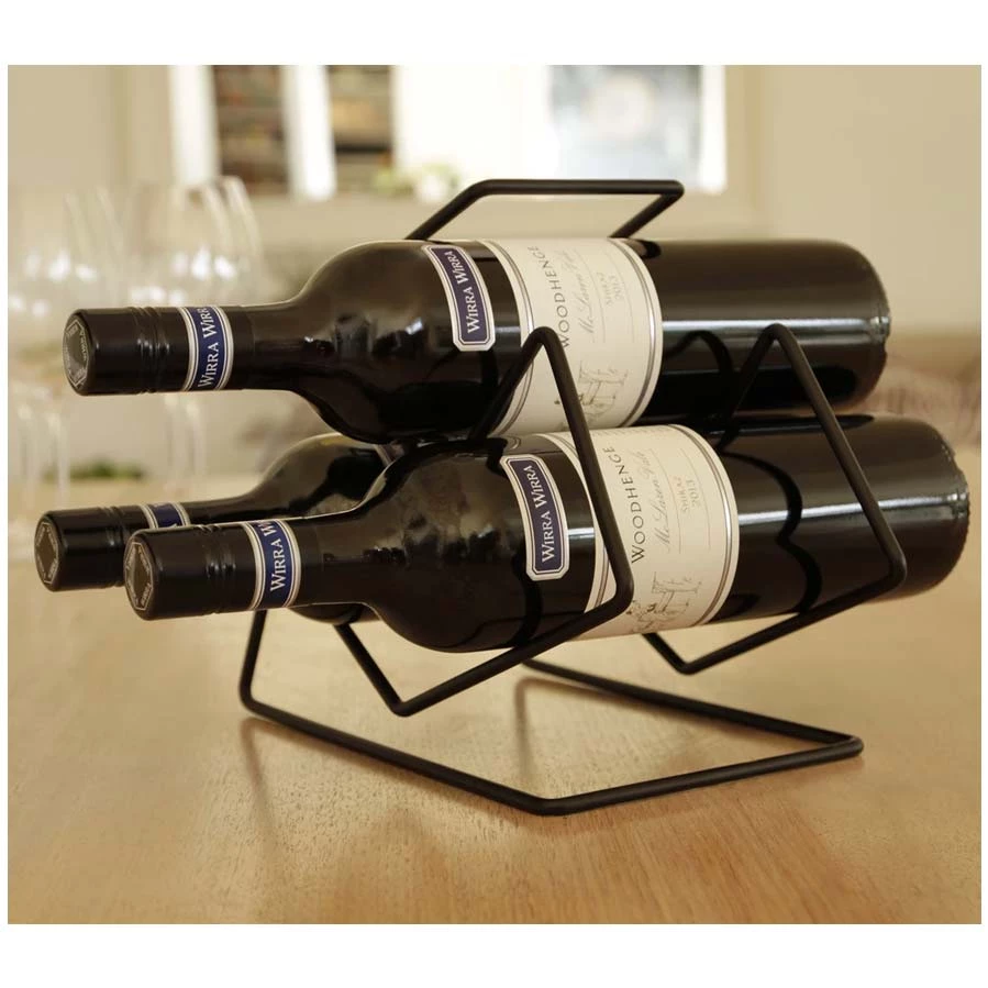 Each Vino wine rack holds 3 standard claret shaped wine bottles.
