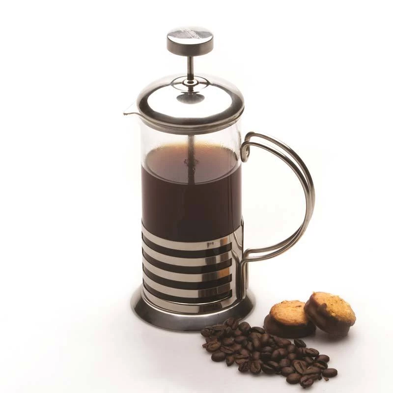 Made of quality stainless steel and heat resistant glass, it has a fine mesh filter to keep grounds inside the press and out of your cup.