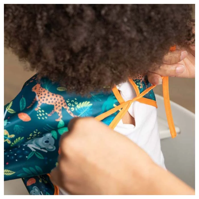 Generously sized, and both comfortable and durable, the Sleeved Bib can fit babies from 6-24 months by adjusting sleeve length with the elasticised cuff.