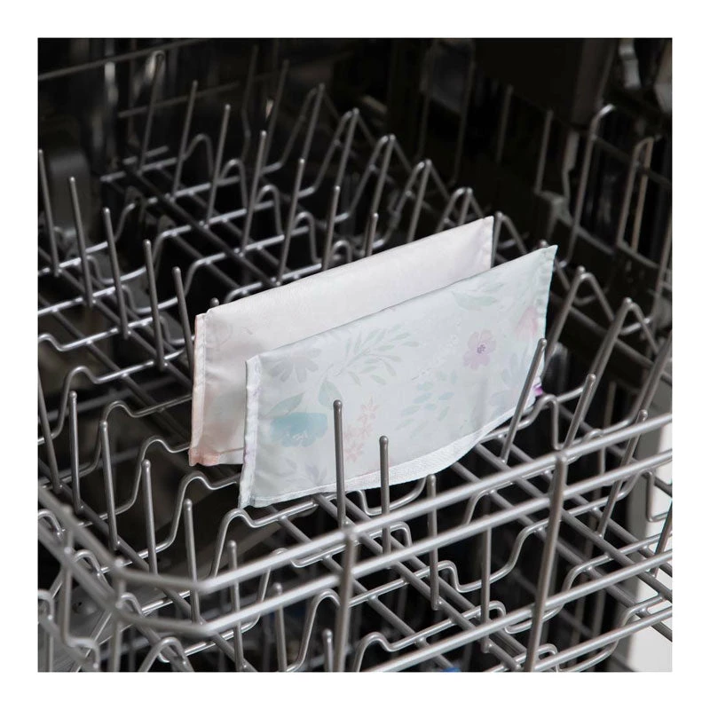 – Machine washable, dishwasher safe (top rack only), hang dry.