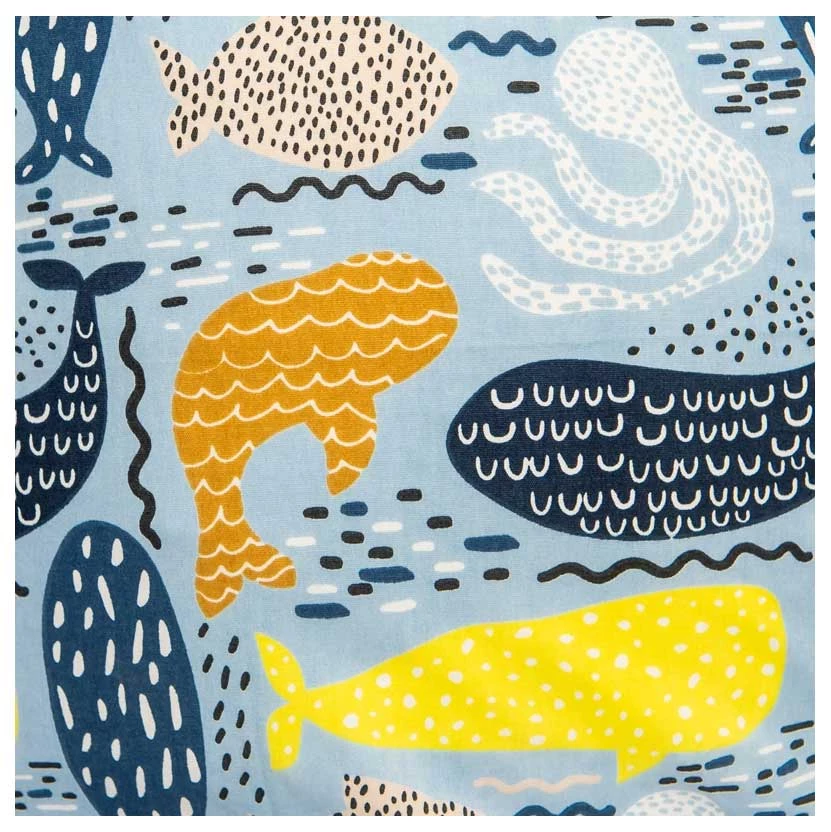 This Bean Bag Cover brings you underwater fun with the Whales and their aquatic friends in shades of blue with yellow piping
