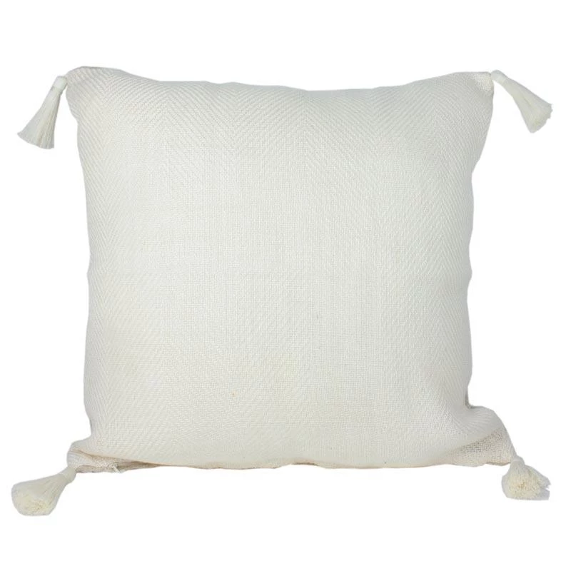 This beautiful off white cushion offers a natural texturised look with the added charm of corner tassels.