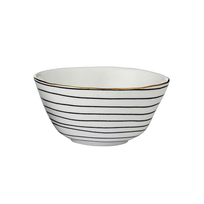 Made from porcelain, these stunning bowls features a monochrome stripeΒ design with a gold edge to add a glamourous touch – sure to impress your guests.