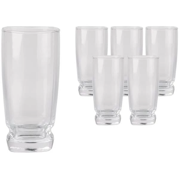 Features six glasses. Each glass holds 360ml, and is suitable for all long tall drinks, including water, juice or a wee tipple.