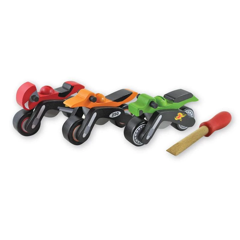 With Discoveroo Build A Bike, you can modify the three motorbikes using the screwdriver provided. This set includes 3 motorbikes with interchangeable parts.