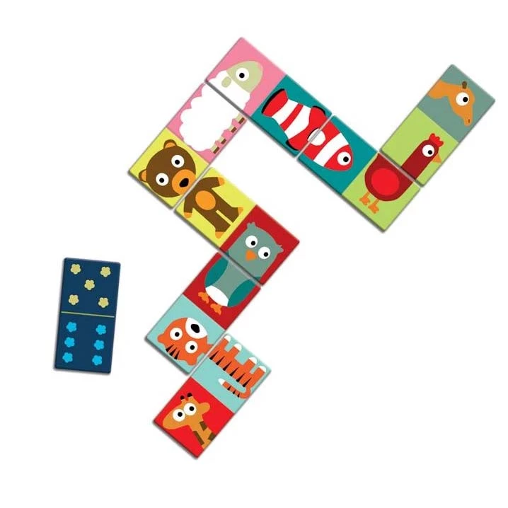 Animo domino puzzle is a fun picture recognition and number matching game from Djeco.