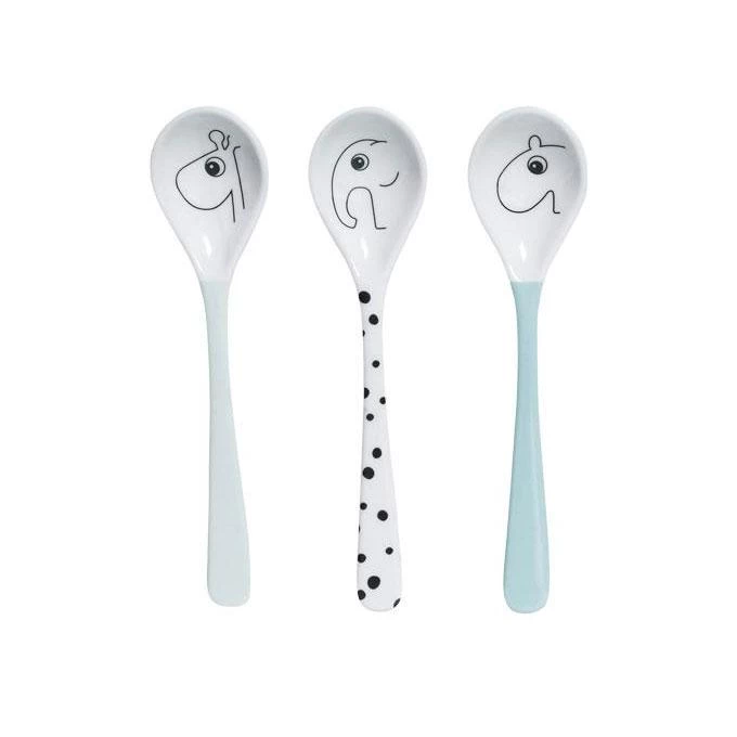 Raffi, Elphee and Ozzo will help you introduce your baby to solids. The long handle will get you to the bottom of any meal. A perfect baby spoon set for first bites.