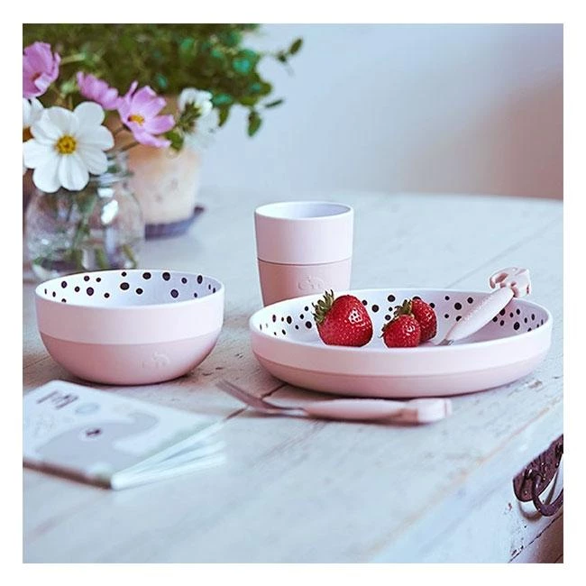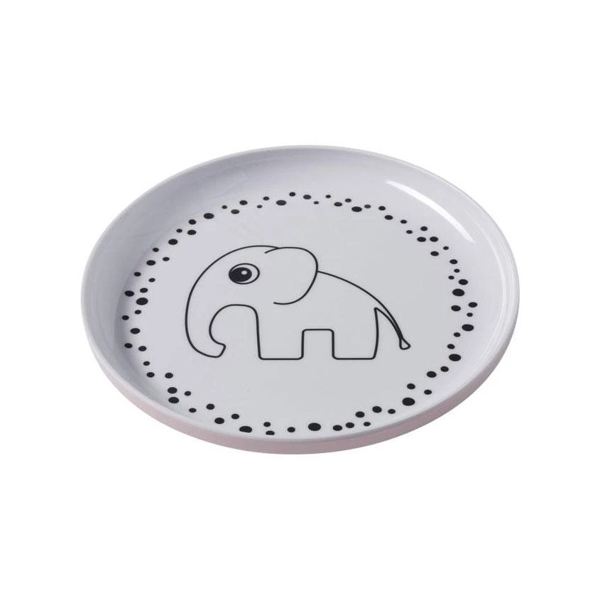 Happy Dots are dancing around Elphee the cheerful elephant who is hiding under your veggies. She is just waiting for you to eat up so she can come out and play.