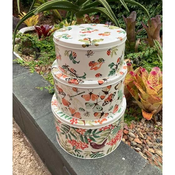Emma Bridgewater All creatures great and small cake tins feature gorgeous butterflies, ladybirds and foliage.