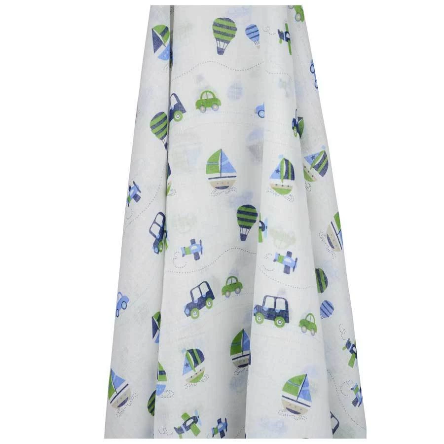 This baby muslin & pram clip pack features a great Transport design plus blue & green pram clips all beautifully packaged in a cute box making them perfect for gifting.