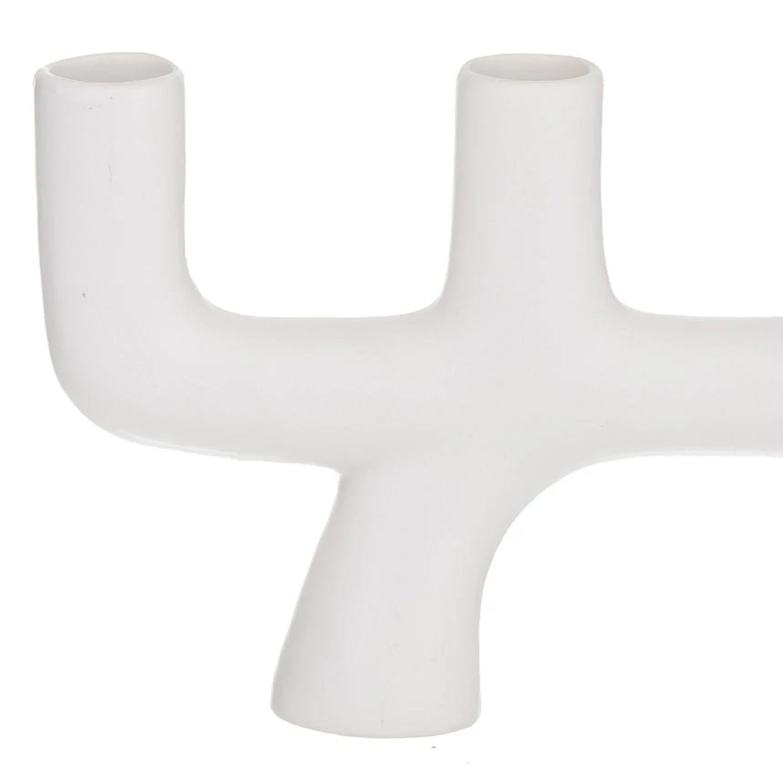 Featuring an abstract silhouette and crafted from stoneware with a semi-matte glaze finish, it will add a contemporary design element to any living space.