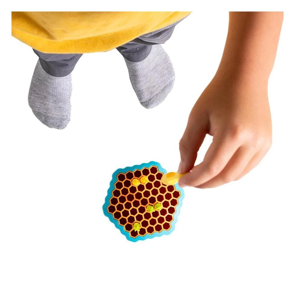 It sounds easy, but once you’re standing up with the gameboard on the ground, suddenly that honeycomb grid looks a whole lot smaller… Only players with a steady hand and a keen eye will have what it takes to land three in a straight row first!