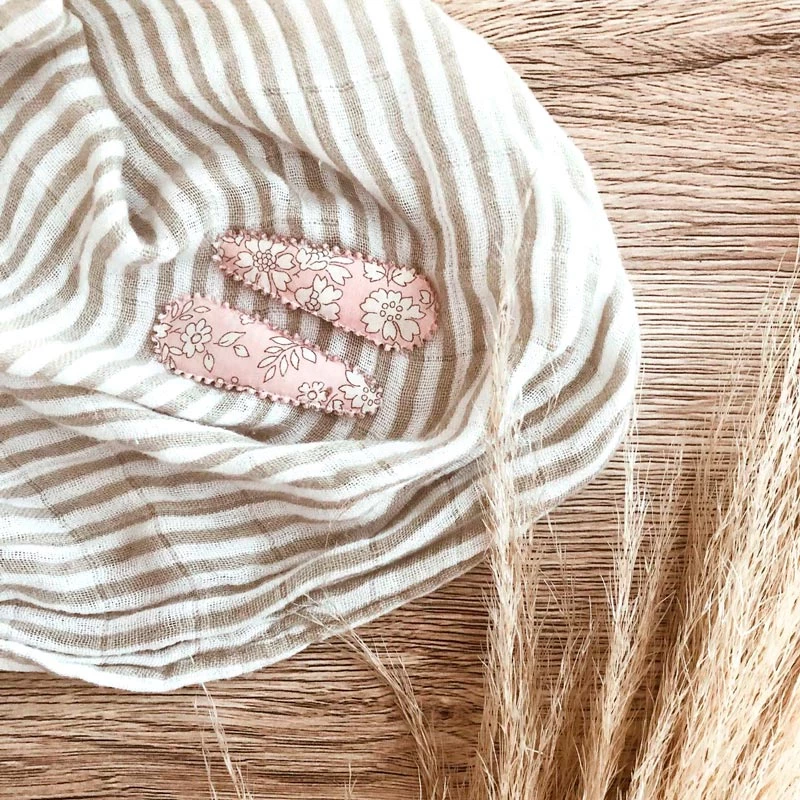 These NZ handmade clips are made from a snap clip and come in a range of delicate floral Liberty fabrics, finished with a scalloped edge.Â
