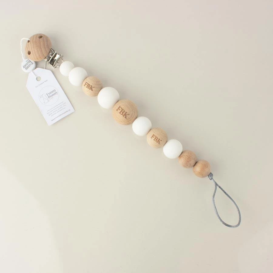 Funny Bunny Kids Dummy Clip – White Wood