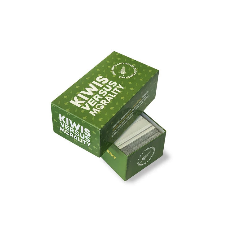 Kiwi’s Versus Morality is a game for Kiwi’s who love laughing at themselves. We’re a pretty crack-up nation, and this game is all about having a laugh about our more memorable moments… and some of those moments we’d probably rather not remember.
