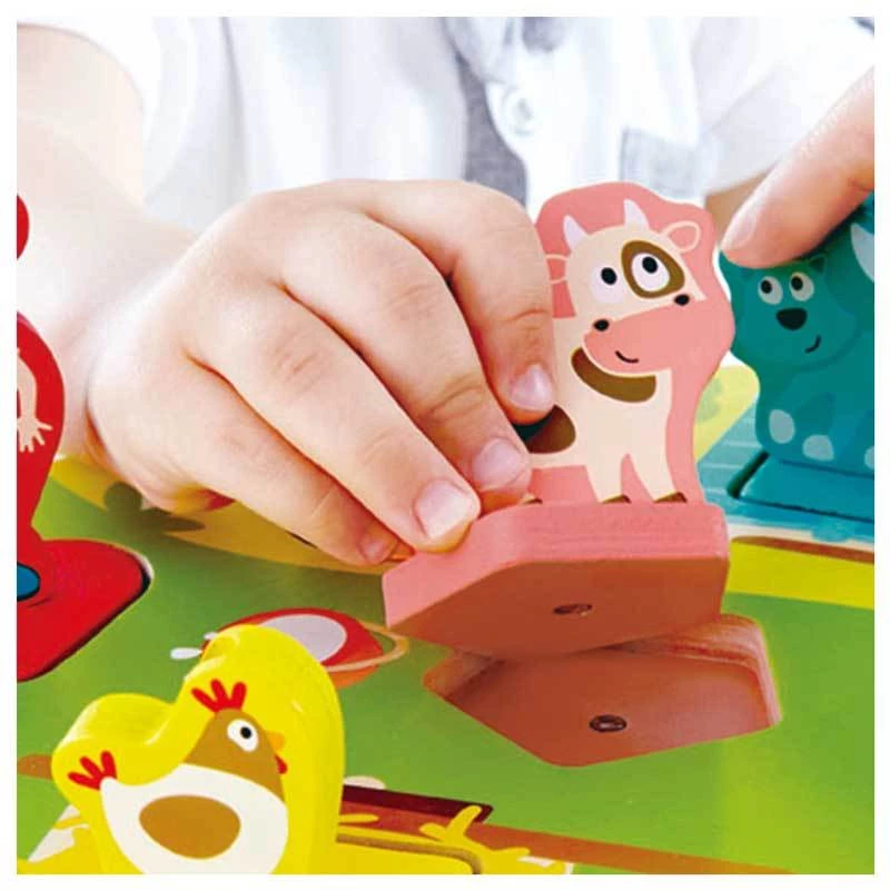 Solve the Farmyard Sound Puzzle by matching the farm animal pieces by colour, shape and sound, and create your own farmyard story as you play!