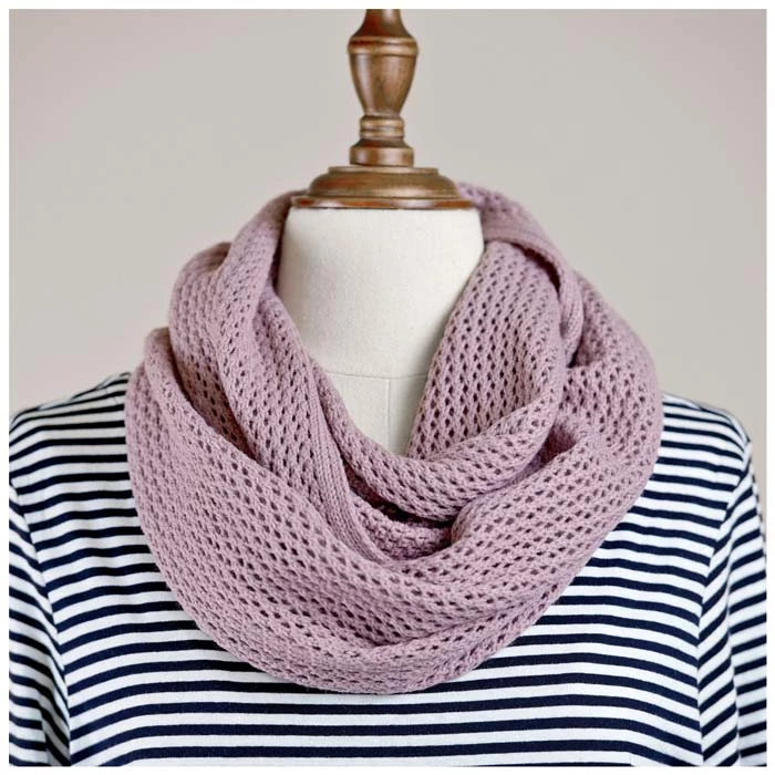 An infinity scarf (snood) is a scarf made in a loop so won’t blow off in the wind.