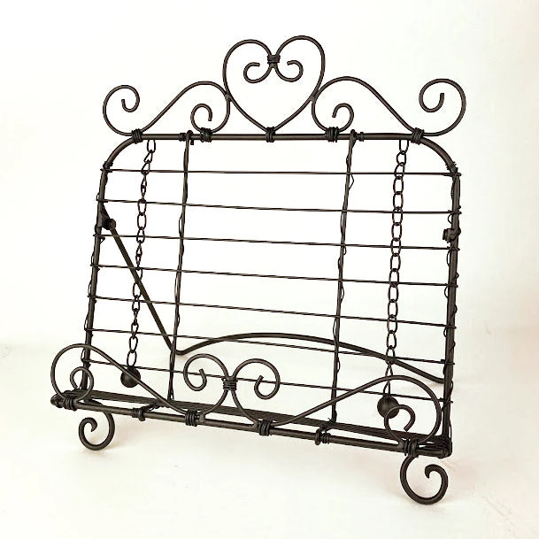 Use this rustic metal Cookbook Stand to keep your cookbook propped open as you bake or prepare dinner in the kitchen.