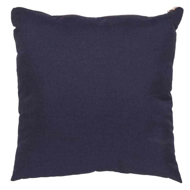 This large 60cm ink blue cushion features a beautiful rose coloured zip and will be the perfect addition to your home.