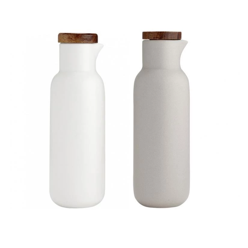Store and pour your favorite oil and vinegar in this contemporary set of ceramic bottles.