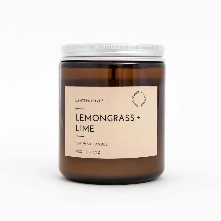 Hand-poured in Australia, these beautiful rustic amber glass jars have been filled with a soy wax blend and combined with the fragrance notes of Lemongrass & Lime.