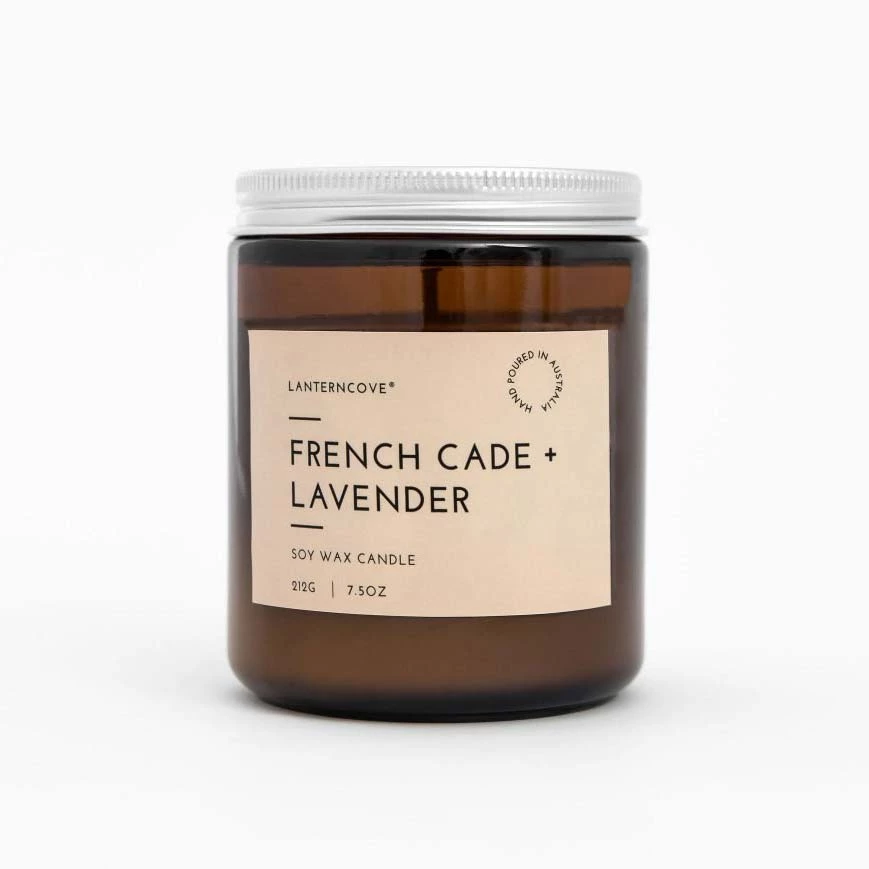 Hand-poured in Australia, these beautiful rustic amber glass jars have been filled with a soy wax blend and combined with the fragrance notes of French Cade & Lavender.
