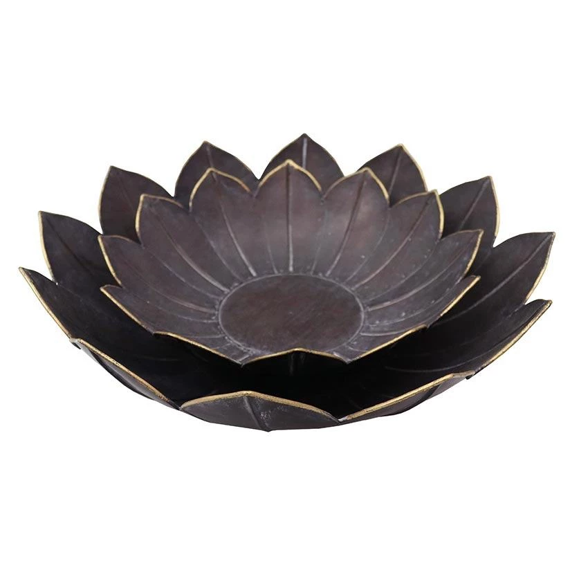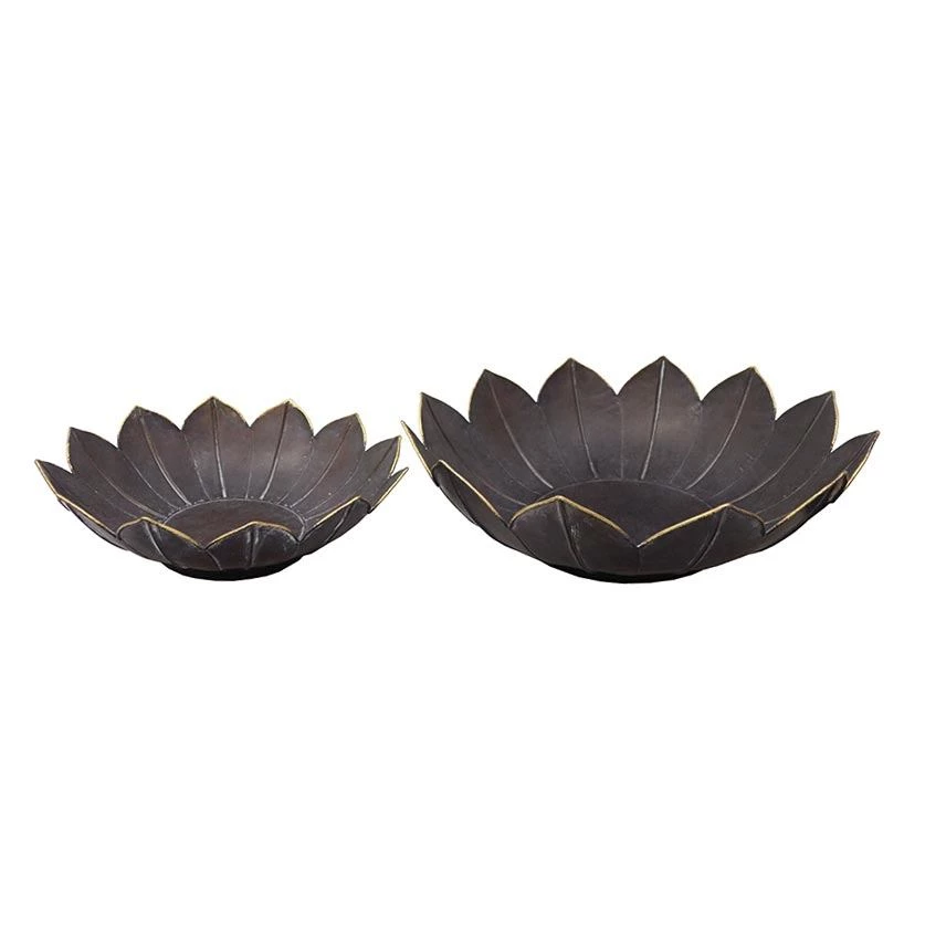 These large decorative iron flora bowls feature a lovely floral design with a golden edge.