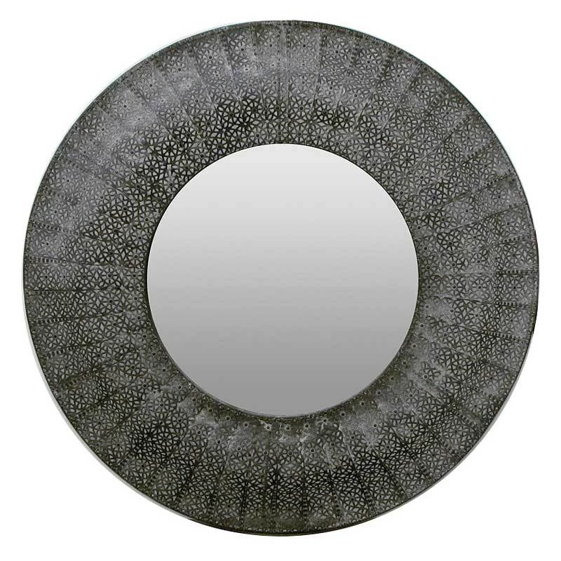 The large round mirror is an outstanding statement piece for your wall and features a complex and intricate design with a blackened finish.