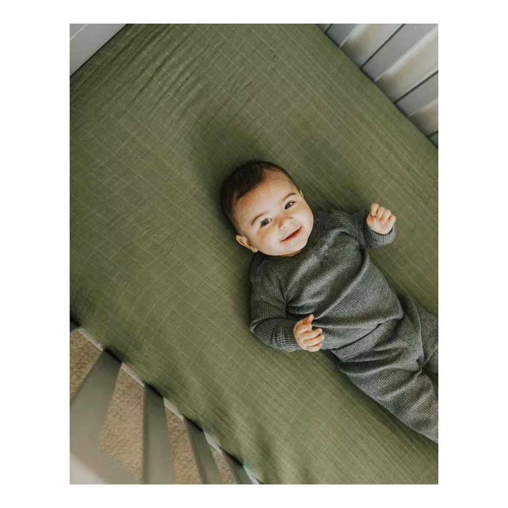Little Unicorn Cotton Muslin Fitted Cot Sheet β Fern