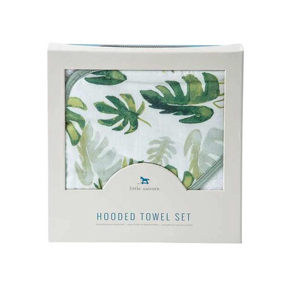 Little Unicorn Hooded Towel & Wash Cloth Set β Tropical Leaf