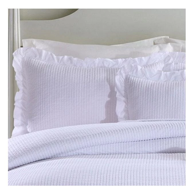 The Audrey Euro Cushion cover features a subtle yet elegant white striped design with ruffle fringe which creates a versatile look that coordinates with just about any bedroom style – from classic to modern or countryside.