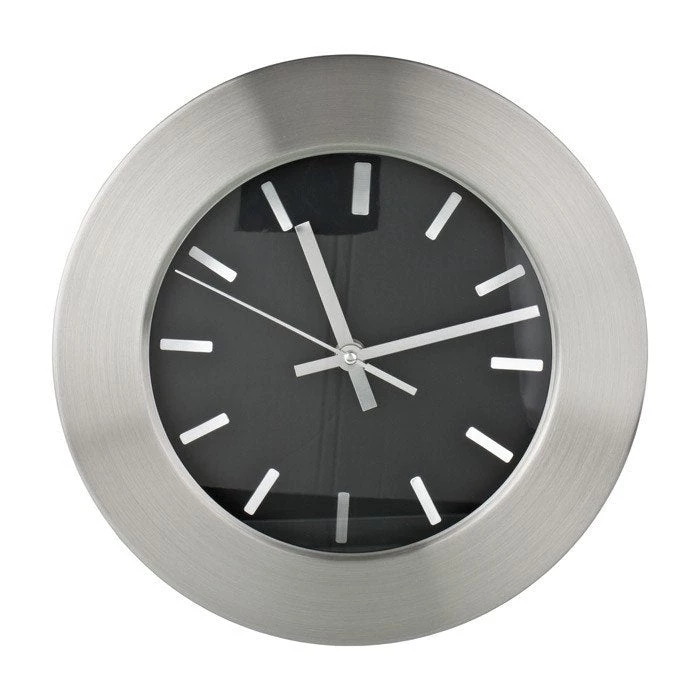 It features a brushed stainless steel design with silver hands & hour markers and a black face. It also has a nice depth of 4.5cm which will help make it stand out on any wall.