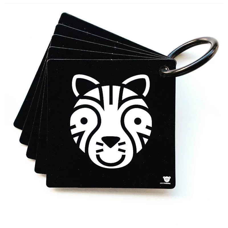 My Stroller Cards feature 5 durable double-sided, high-contrast black & white cards with a black snap lock ring.