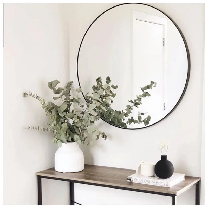 The high-quality mirrored glass ensures exceptional clarity and brilliance and the curved timber frame is simple yet chic.