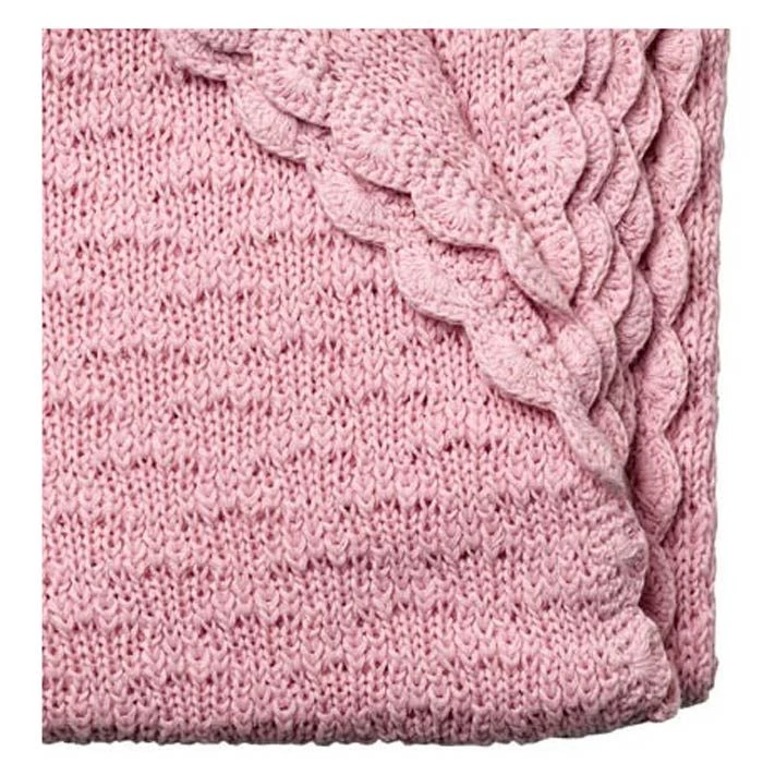 This beautiful traditional lace-look knitted cotton baby blanket features gorgeous scalloped edging.