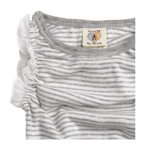 Nurtured By Nature Kind Organic Cotton Frilly Romper – Pebble Stripe