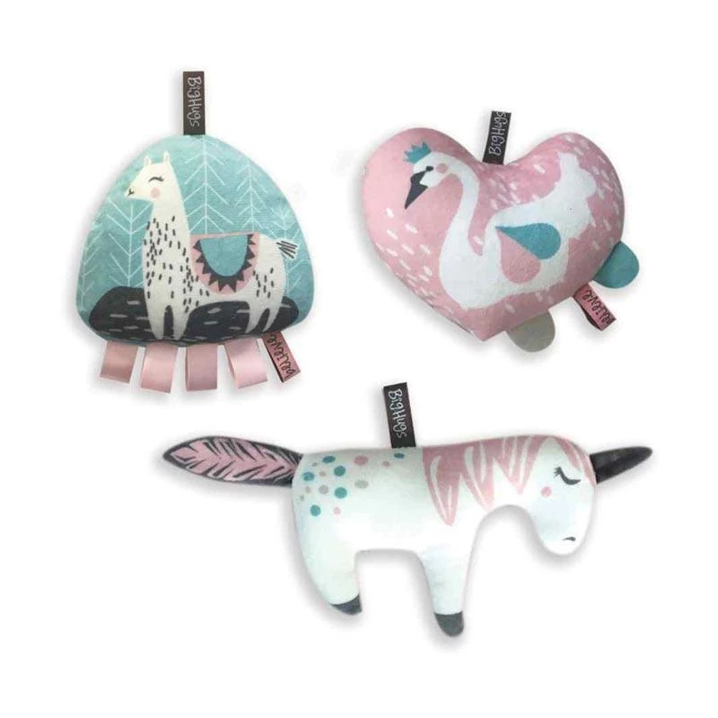 These toys perfectly match the O.B Design playmats and playbar/pillow set.