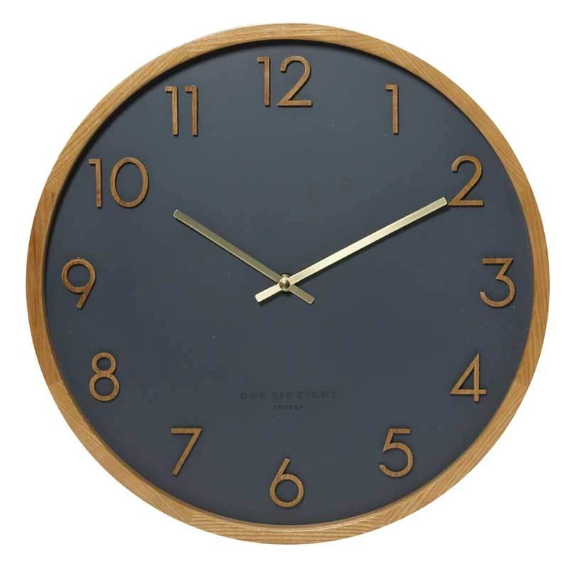 The Scarlett wall clock by One Six Eight London boasts a contemporary design with a hint of retro charm.