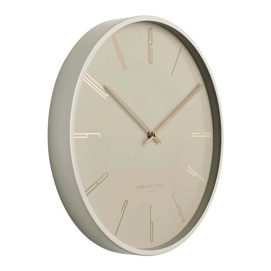 Maya’s beautiful design features a sleek grey metal case, grey face with coordinating champagne gold hands and number markers.