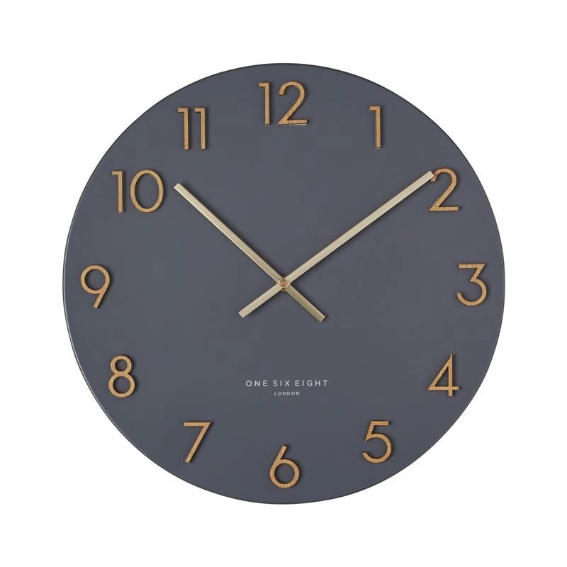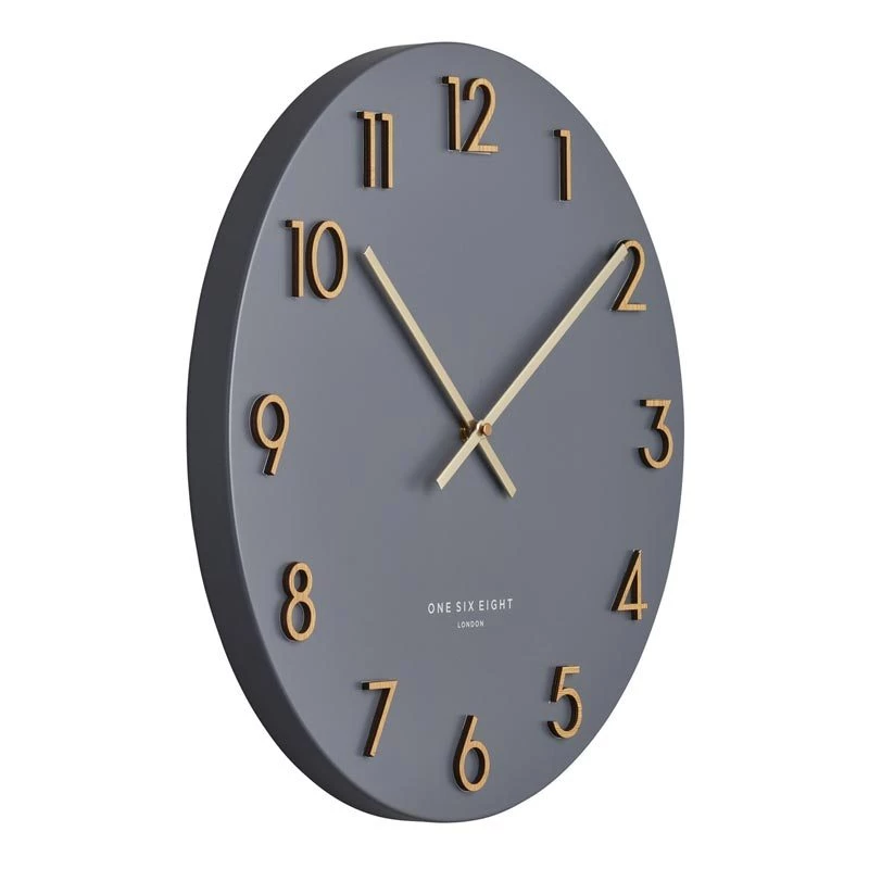 Fashioned from durable pressed metal with wooden number details and luxe soft gold hands for a fashionable addition.
