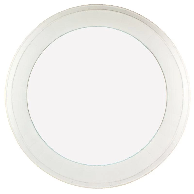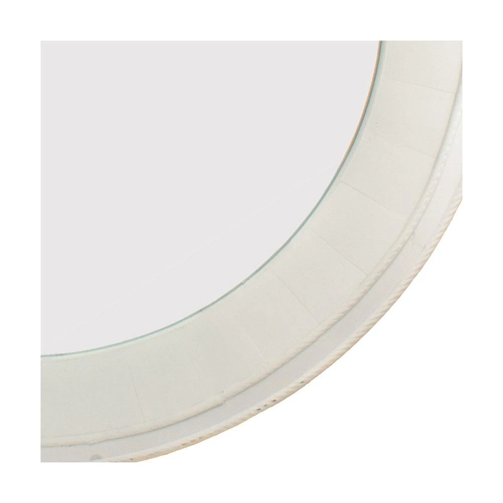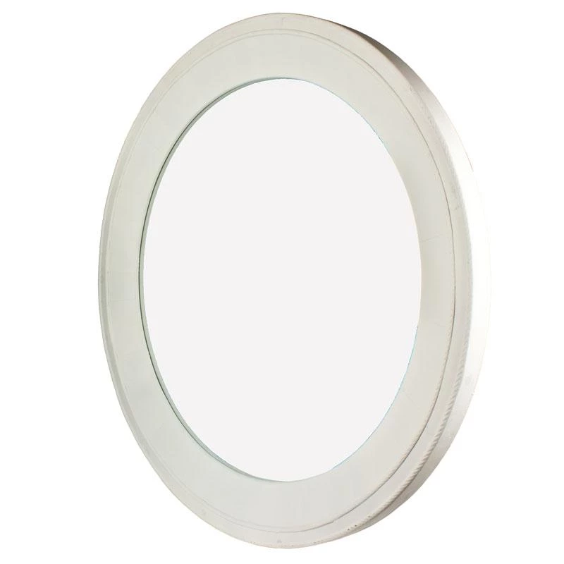 This fabulous round wooden mirror features an antiqued white paint finish with rectangle sections and a double wood rope detailing.