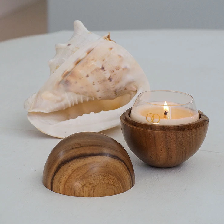 Only Orb Glass Candle & Handcrafted Teak Holder – Oar