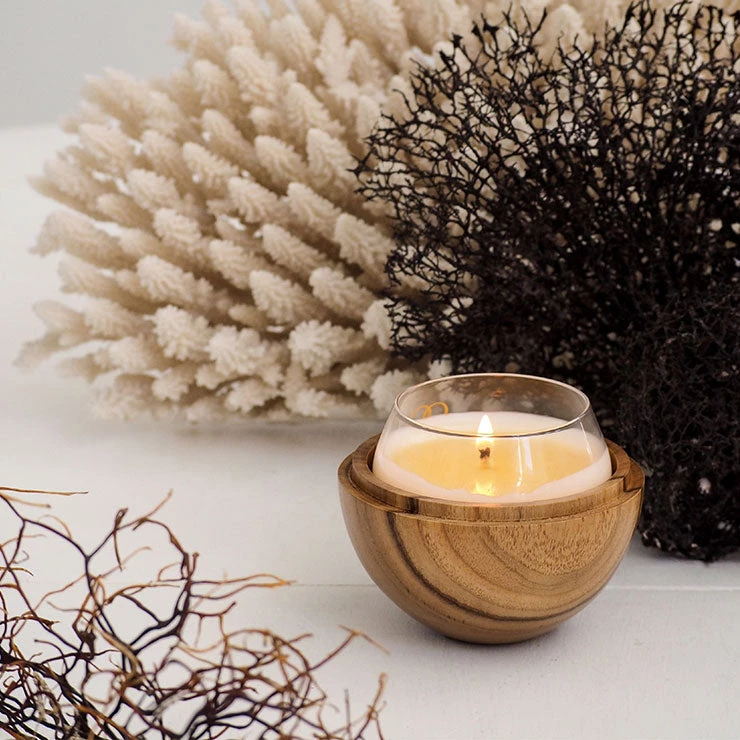 Only Orb Glass Candle & HandcraftedΒ Teak Holder βΒ Oh!