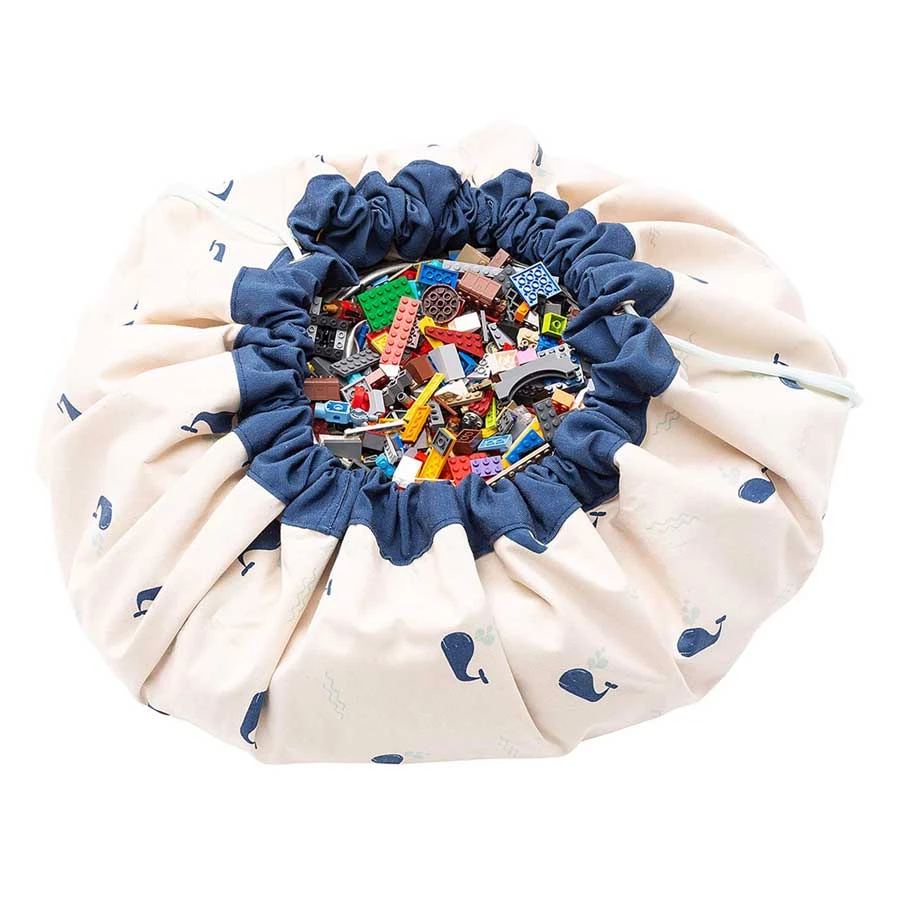 This 2-in-1 toy storage bag with its practical drawstring for easy closing provides plenty of room for toys and doubles as a play mat when spread out flat.